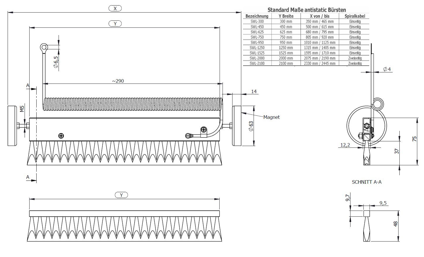 Szczotka antystatyczna SWL rysunek